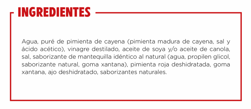 Ahhh esta sí que está spicy, te presento a la famosa Buffalo Wing Sauce. Una salsa que te dejará la boca en llamas y la cabeza en las nubes con lo tasty que es. Puedes ocuparla para preparar Alitas de pollo, cerdo o incluso mezclarla con mayonesa y dejar locos a tus amigos.